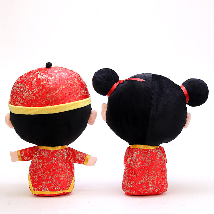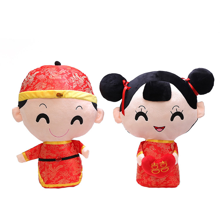 Marriage supplies couples with pillow toys gold girl jade doll festive bed for the wedding celebration doll pair