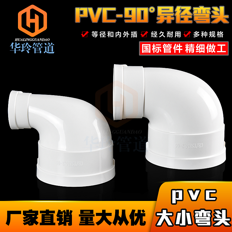 PVC size elbow 75*50 110*50 110*75 reducing elbow 90 degree reducing elbow Drain pipe elbow
