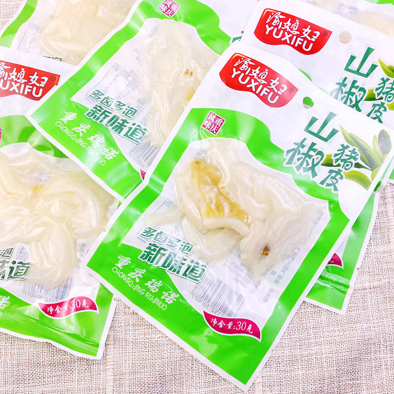 Chongqing daughter-in-law pigskin snack pickled pepper flavor 30g*30 packs Chongqing specialty Sanjiao pigskin crystal small package snack food