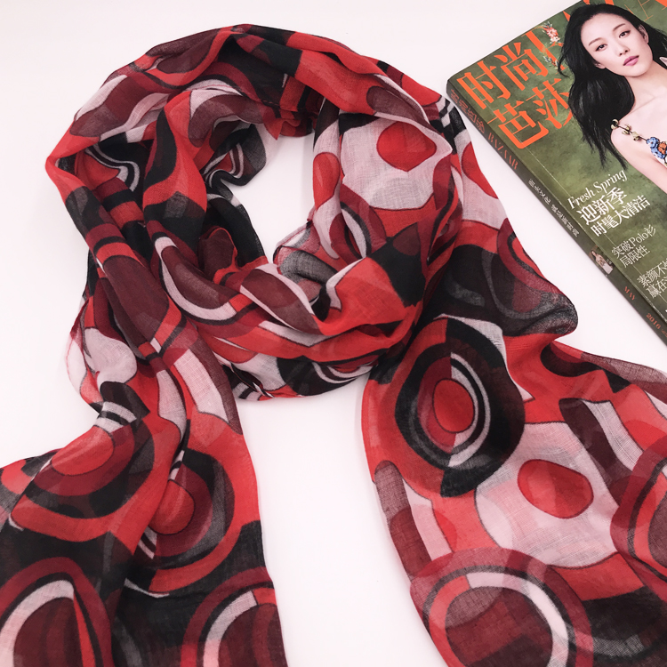 Export Europe and the United States original single long scarf shawl Classic red black and white contrast color circle cotton scarf Autumn and Winter thin section