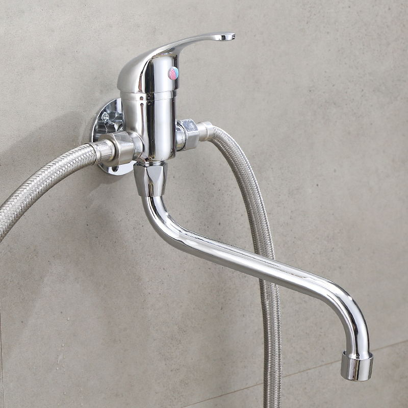 Old-fashioned surface-mounted kitchen hot and cold water faucet wall-mounted sink vegetable basin small kitchen treasure mixing valve can be rotated to discharge water