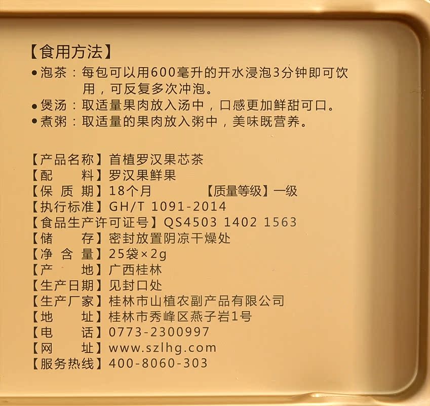 Guangxi Yongfu Low Temperature Dehydrated Grosvenori core Tea Guilin special Artisanal Grosvenori Dried Fruit Kernel Tea Bag boxed in