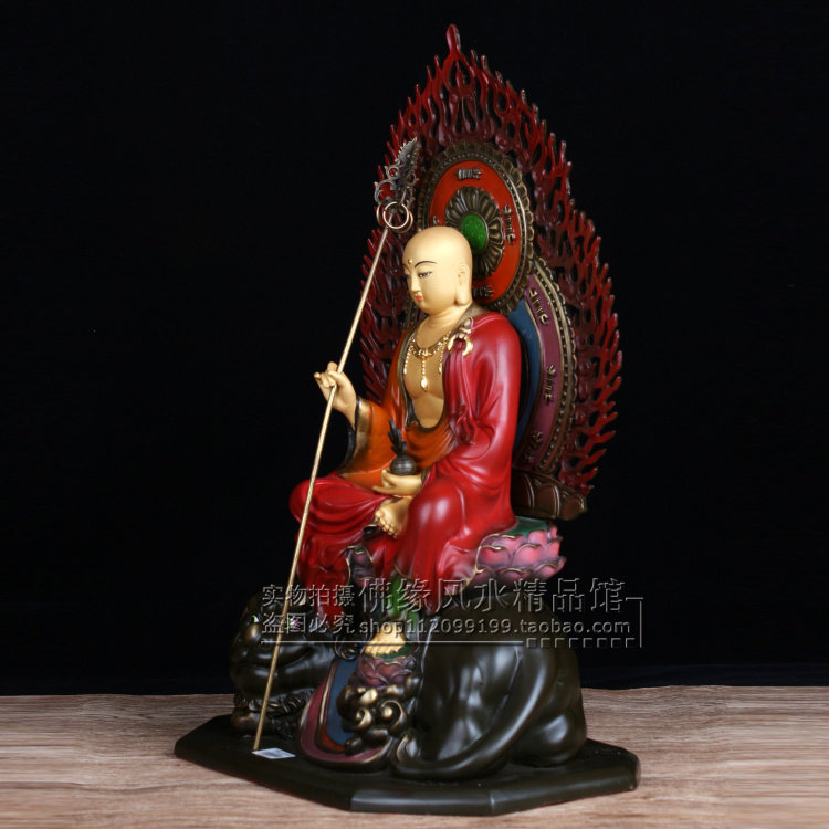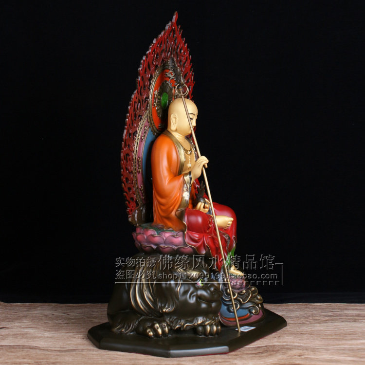 16 inches with Tibetan King Bodhisattva like a riding Tibetan king, paleo - pure copper color painted lion