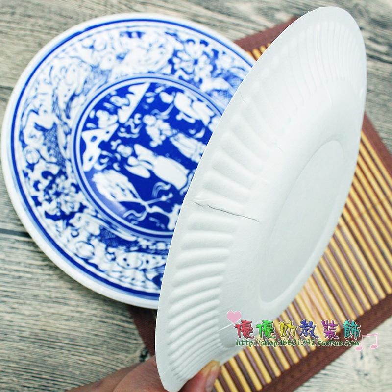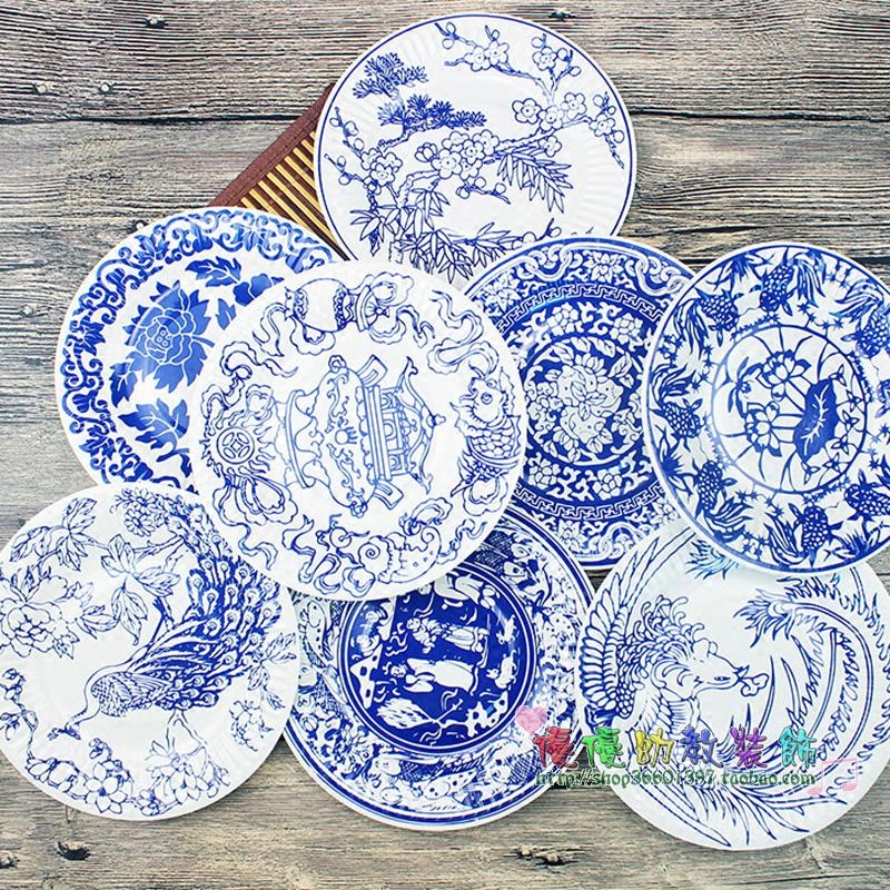Kindergarten classroom corridor ring created decorative materials Chinese style retro blue and white porcelain paper plate edge decoration bamboo plait hanging