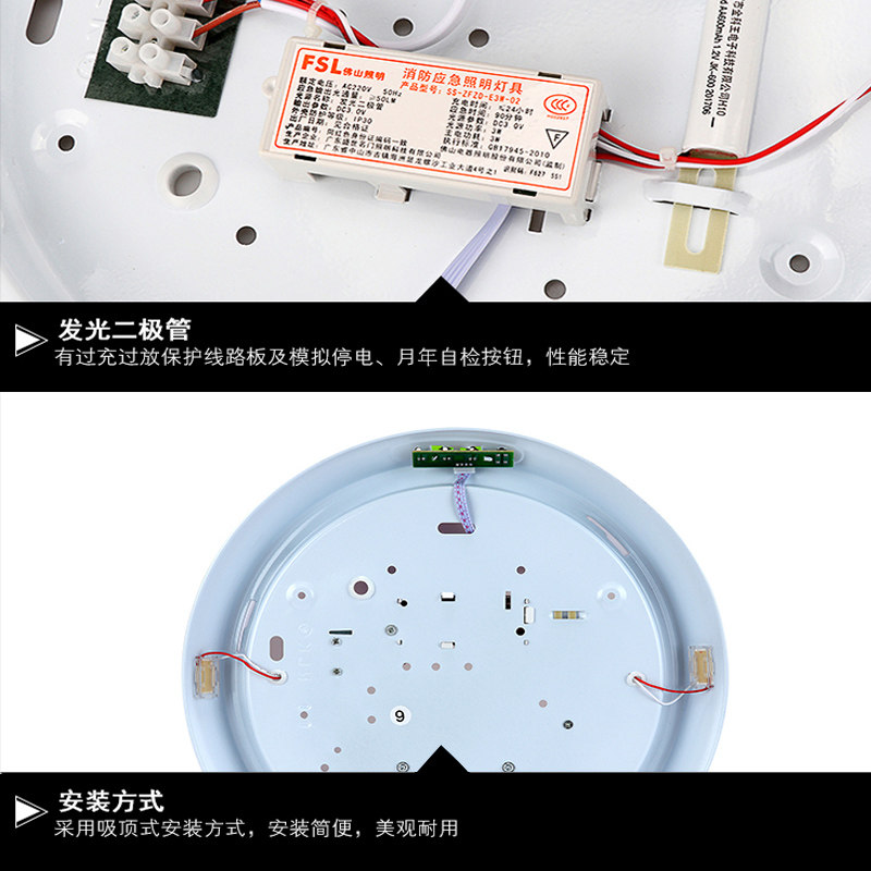 Full white suck top light 25W non-FSL emergency block One full white suction light 13W FSL emergency block One full white suction light 17W FSL emergency block One full white suction light