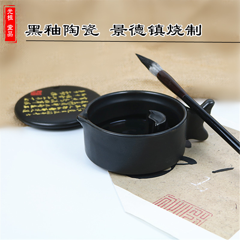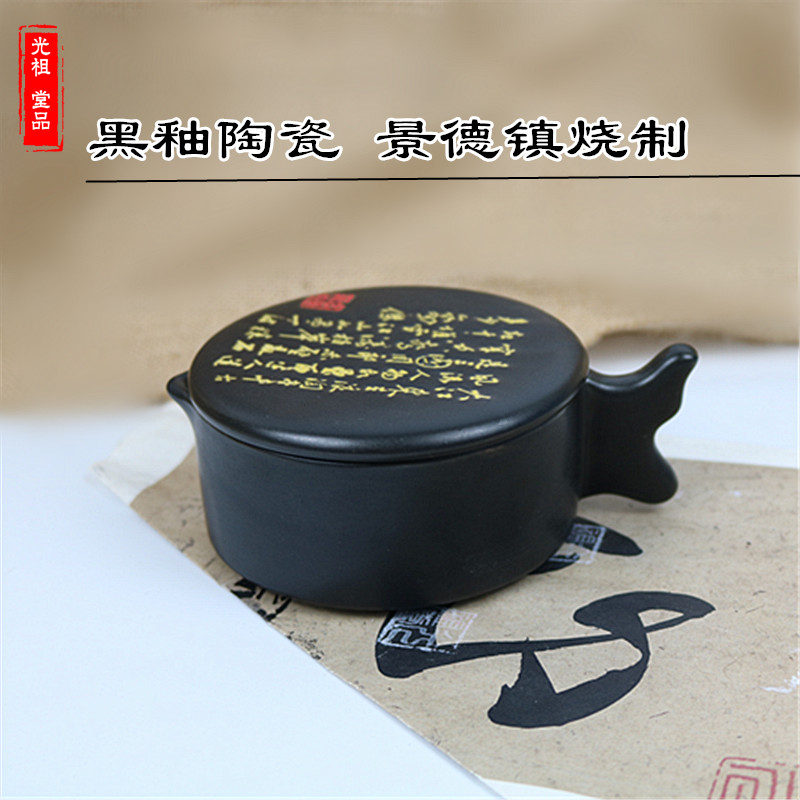 Black Glazed Ceramic Ink Pool Student With Lid Ink-ink Room Multi-functional Ink Haven Room Four Treasure Color Pink Brush Pen Holder Wash