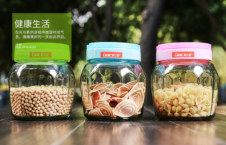Lilac bright color thickened glass storage bottle milk powder bottle honey bottle whole grains bottle moisture-proof sealed bottle