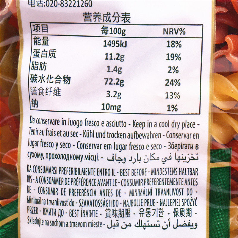 Imported tri-color spiral spaghetti children's pasta home low fat hollow powder screw macaroni flagship store