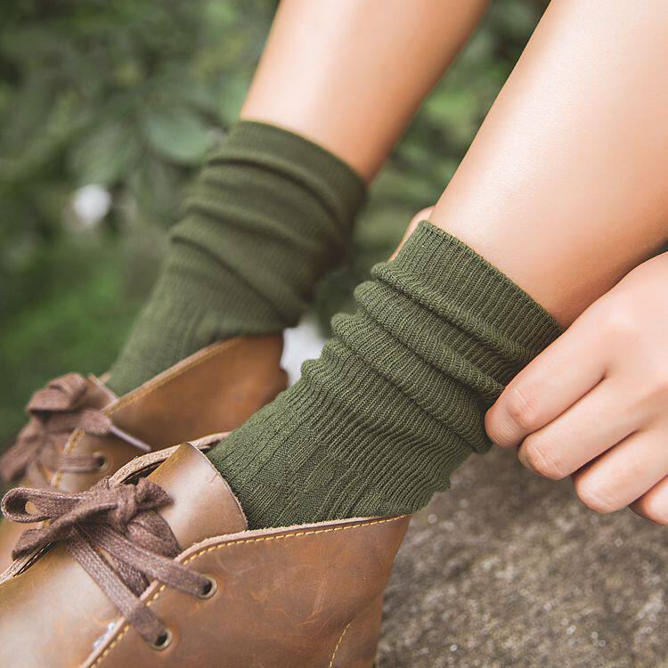 SP126 Comfort Women Socks Retro Tingen Wide Mouth Hemming Heaps Piles Pure Color Socks Midbarrel Women Socks