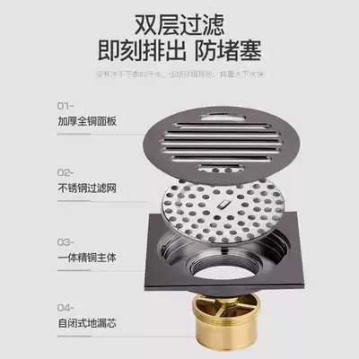 Type A washing machine special copper floor drain (50-75 pipe diameter) type B hollow large drainage shower room copper floor drain (50-75 pipe diameter)