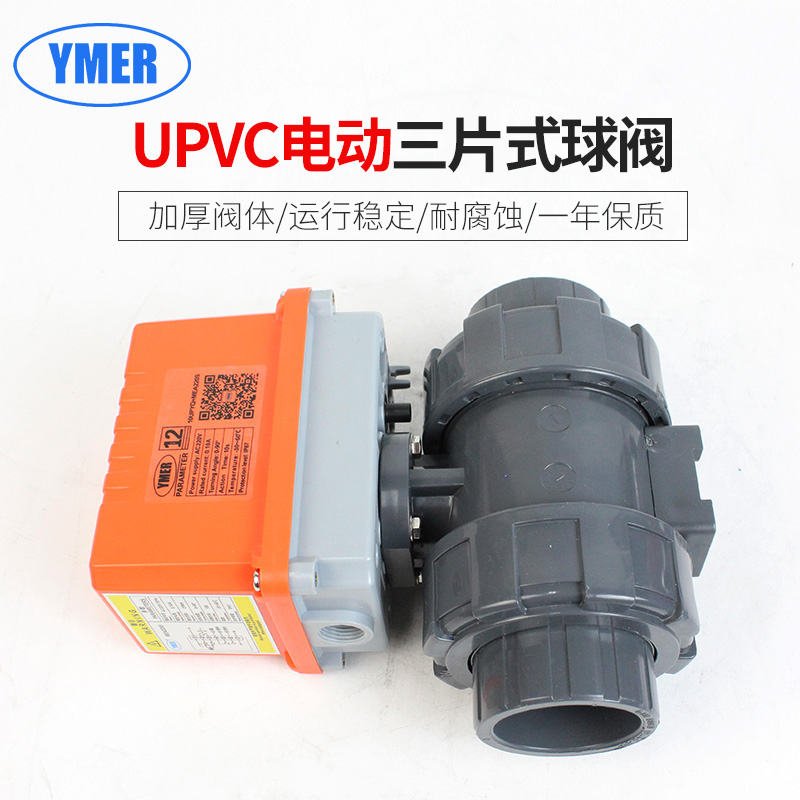 Electric UPVC ball valve double by order live plastic quick-fit switch AC220V acid-resistant PVC anti-corrosive DC24V