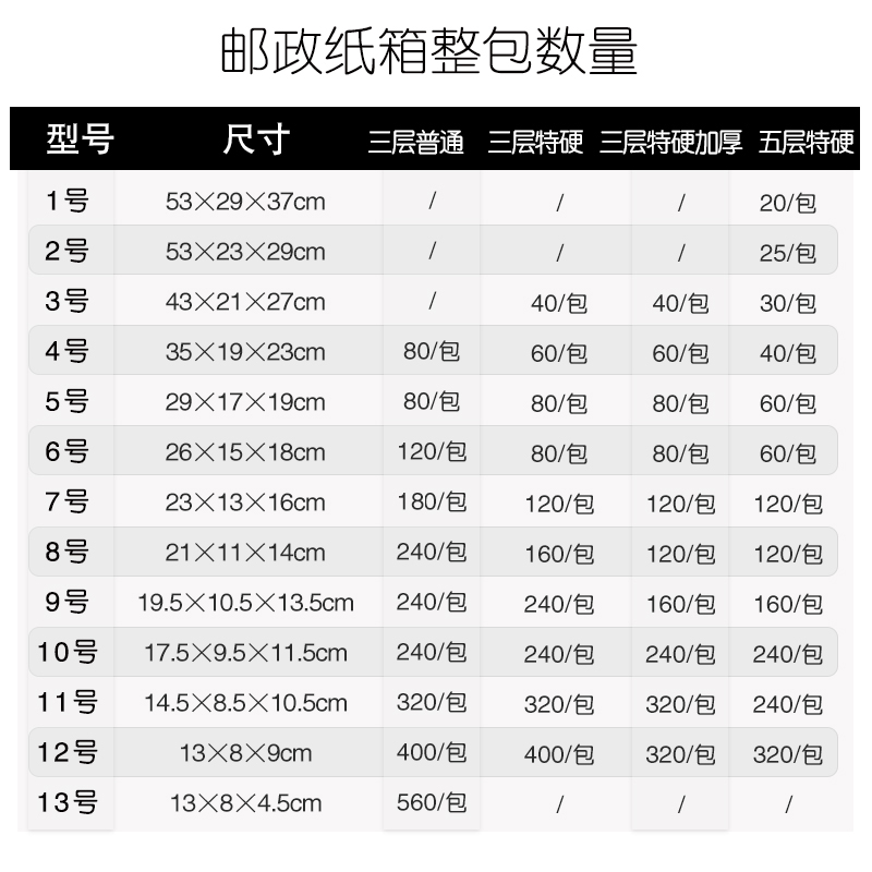 No. 12 (130mmx80mmx90mm) No. 11 (145mmx85mmx105mm) No. 10 (175mmx95mmx115mm) No. 9 (195mmx105mmx135mm) No. 8 (210mmx110mmx140mm) No. 7 (230mmx130mmx160mm) No. 6 (260mmx150mmx180mm) No. 5 (290mmx170mmx190mm No.4(350mmx190mmx230mm) No.3(430mmx210mmx270mm) Other