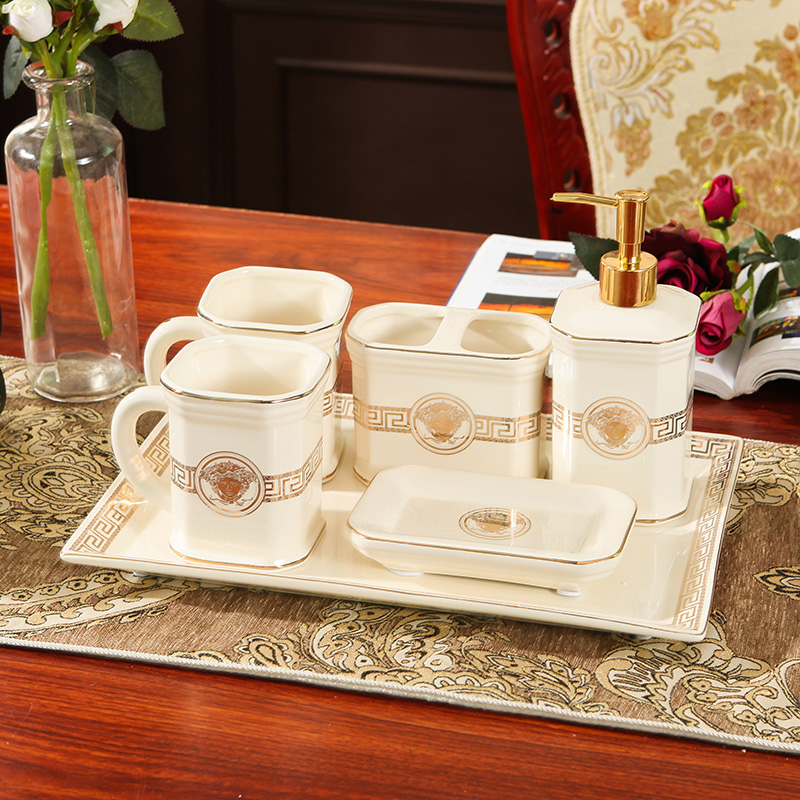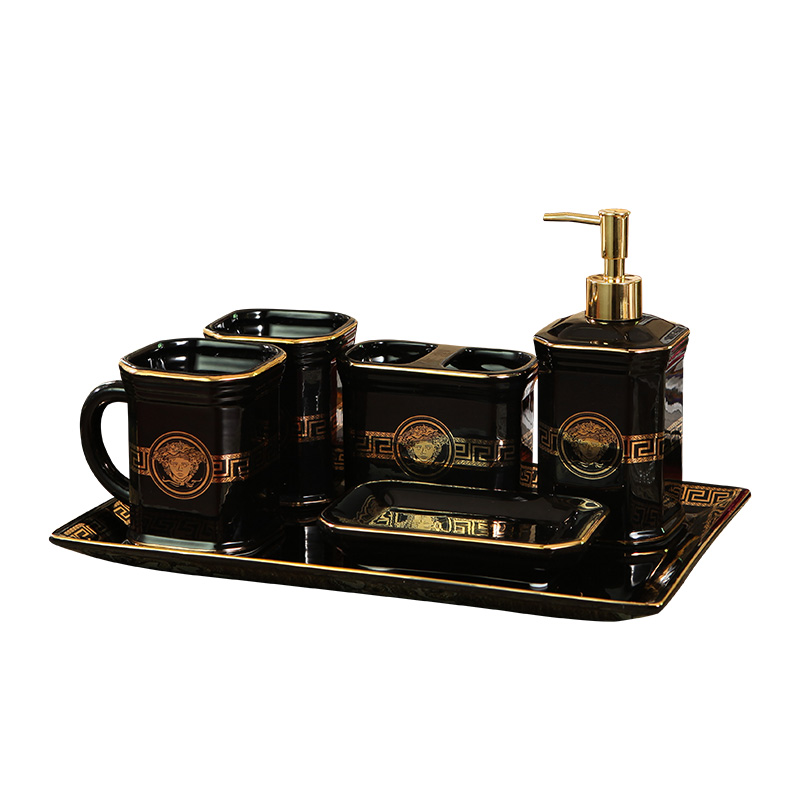 Black glaze bathroom five-piece set (without tray)Yellow glaze bathroom five-piece set (without tray)Black glaze bathroom six-piece set (with tray)Yellow glaze bathroom six-piece set (with tray)