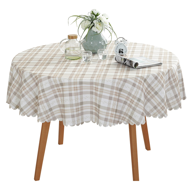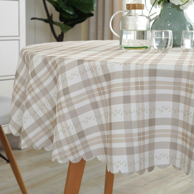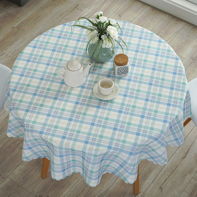 Eurostyle table cloth table cloth art checkered large round table table cushion waterproof and burn-proof and anti-wash round table cushion for home