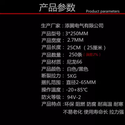 White 3 * 250MM strangled dog tie buckle 2 7 wide plastic seal harness wire self-locking nylon cable tie