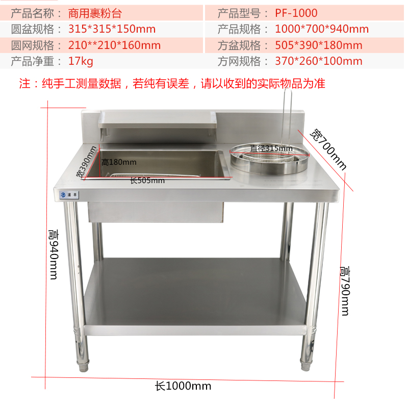 Pu Feng Commercial 1000 Type Wrap Powder Table Fried Chicken 1 m Wrap Powder Table Burger Shop Removable And Thickened Stainless Steel Operation Table