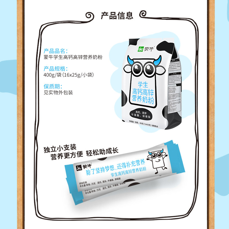 Mengniu high calcium high zinc new student milk powder 400g*2 children and adolescents growth breakfast nutrition for men and women