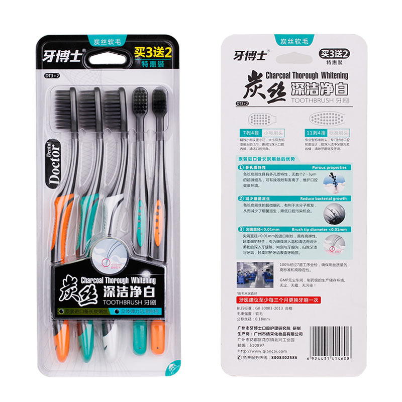 Dr tooth toothbrush charcoal silk deep cleaning soft hair Couple adult household family combination with long charcoal brush silk small head set