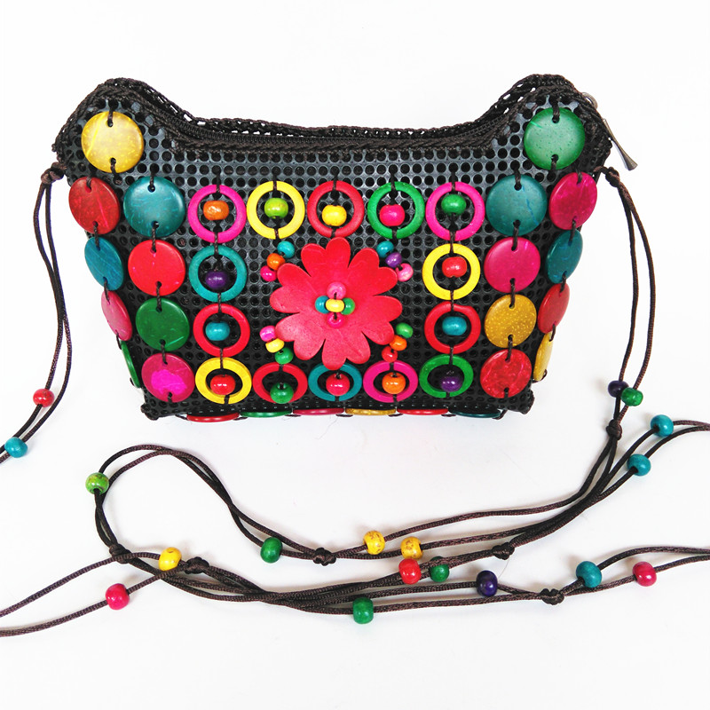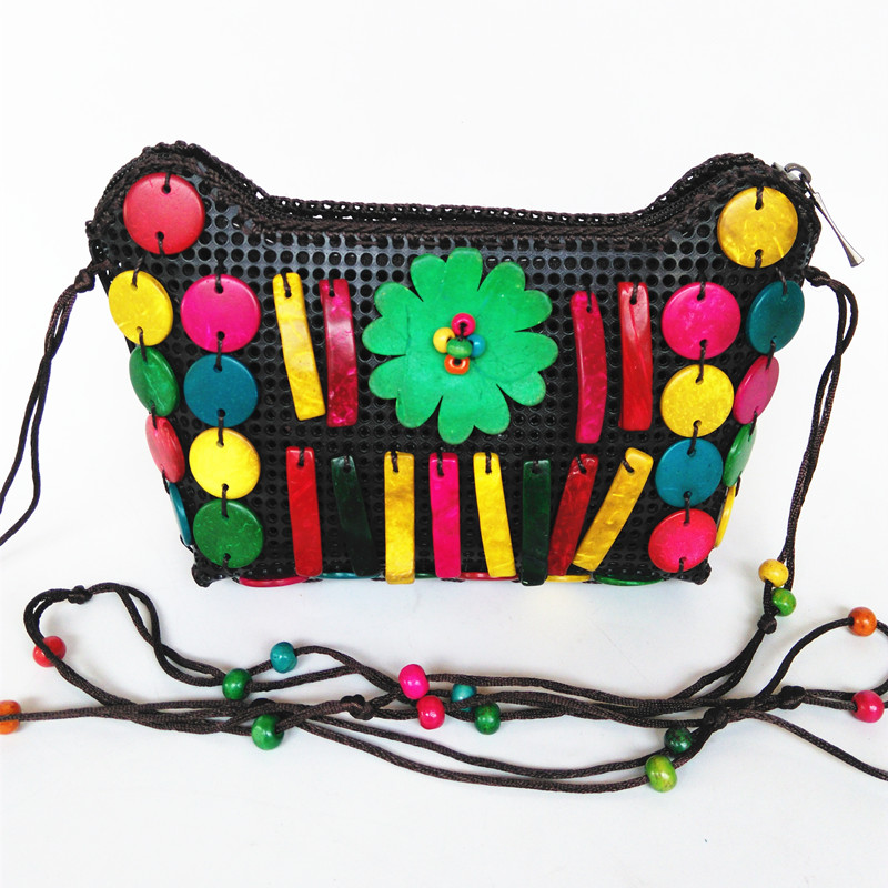 Original Hainan featured handmade coconut shell sloping cross-pack Single shoulder bag Bohemian wind Leisure bucket mobile phone bag zero money-Taobao