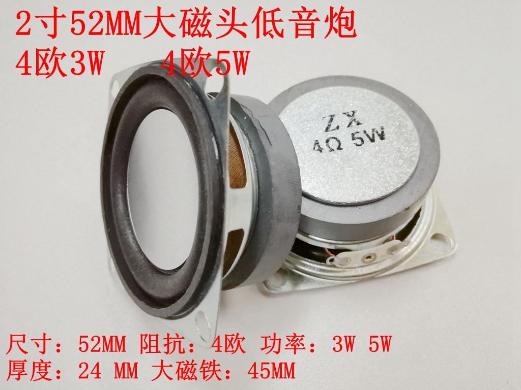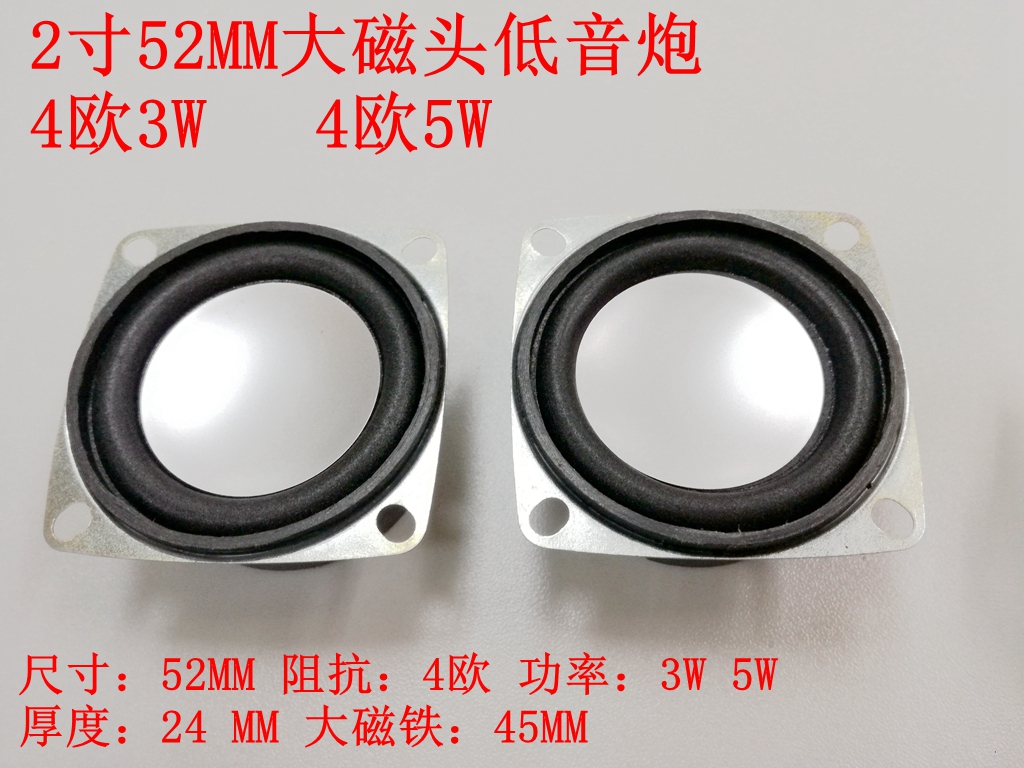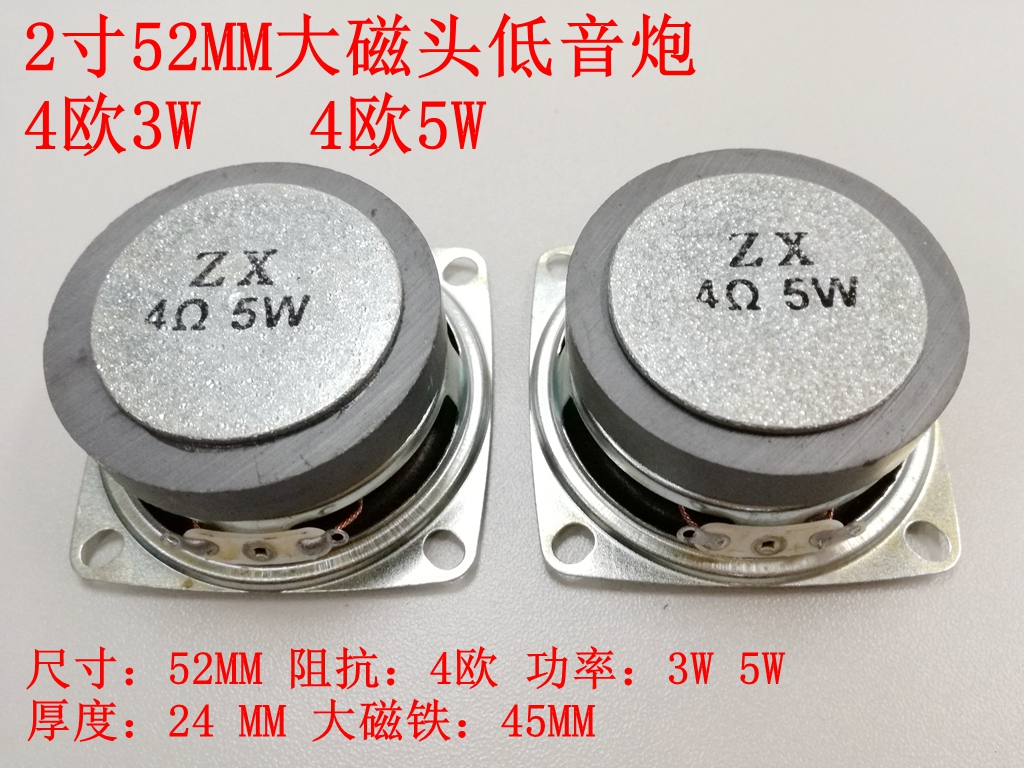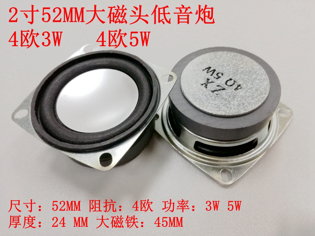 Square 2 inch 52MM4 Euro 3W5W large head Low sound cannons ultra toxic Fever Long stroke Bass Bluetooth Speaker Horn