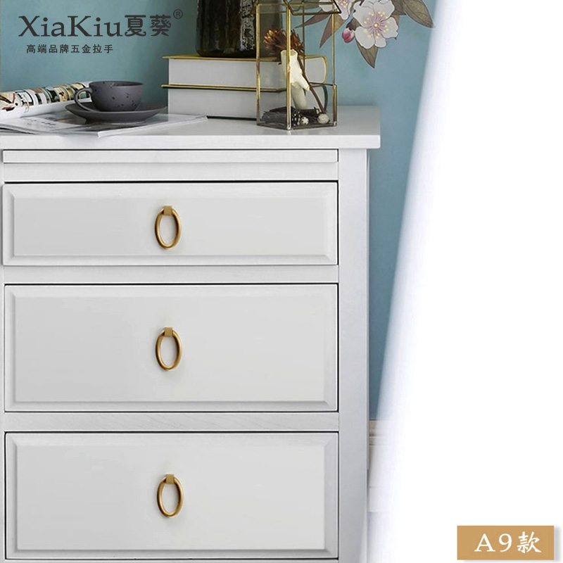 Ring pendant New Chinese pure copper handle cabinet door American cabinet door full brass solid wood furniture drawer single-hole handle