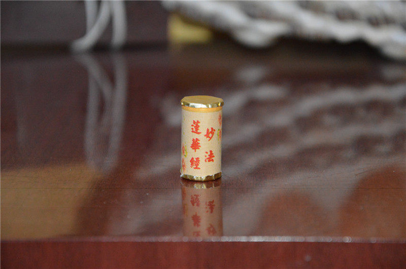 Acrylic pagoda with a built-in miniature scripture of the Lotus Sutra