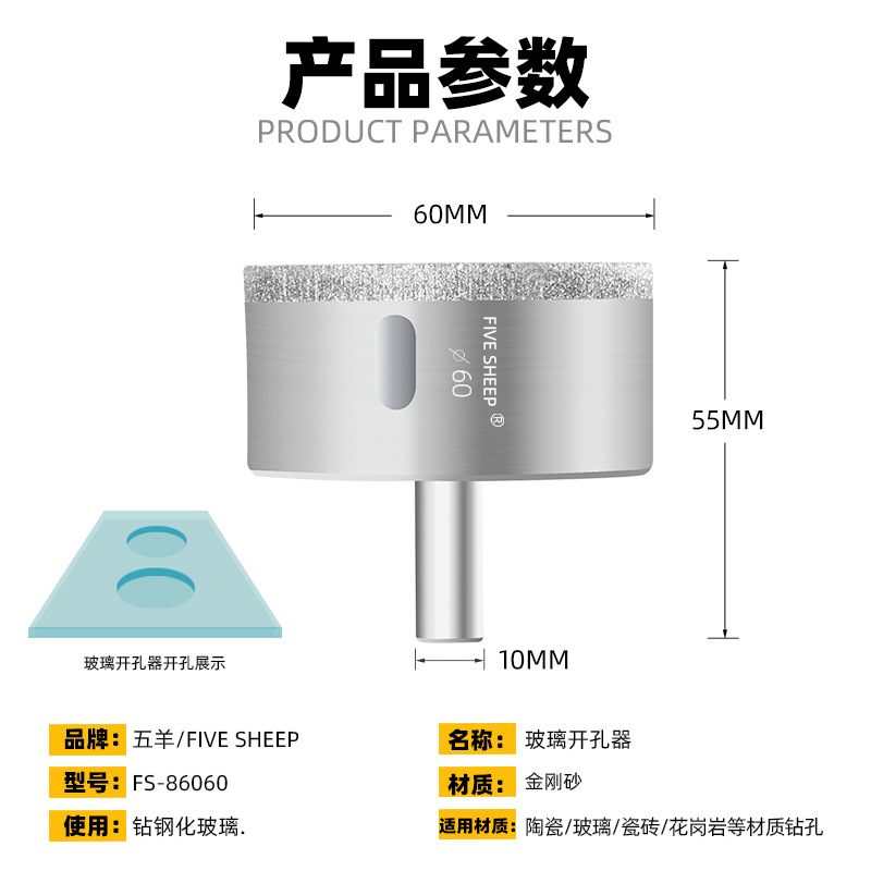 Five sheep glass drillers Range Hood Cut Round Opener diamond sand tiles Drilling Holes Special Tools Multifunction