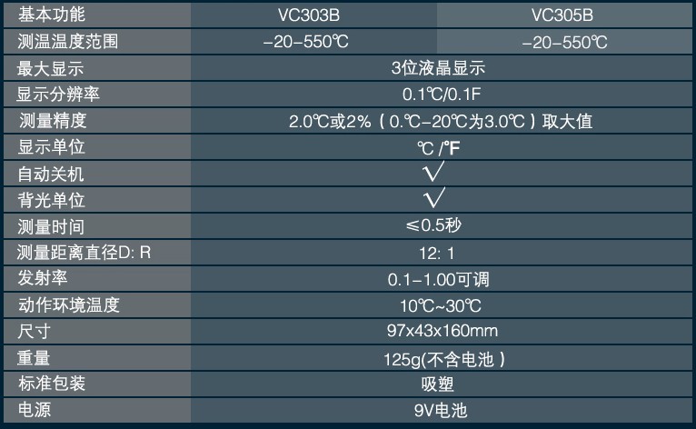 VC303B (-20-550 ℃)VC302B(-32-380 ℃)VC304D color screen (-50-400 ℃)VC304E color screen (