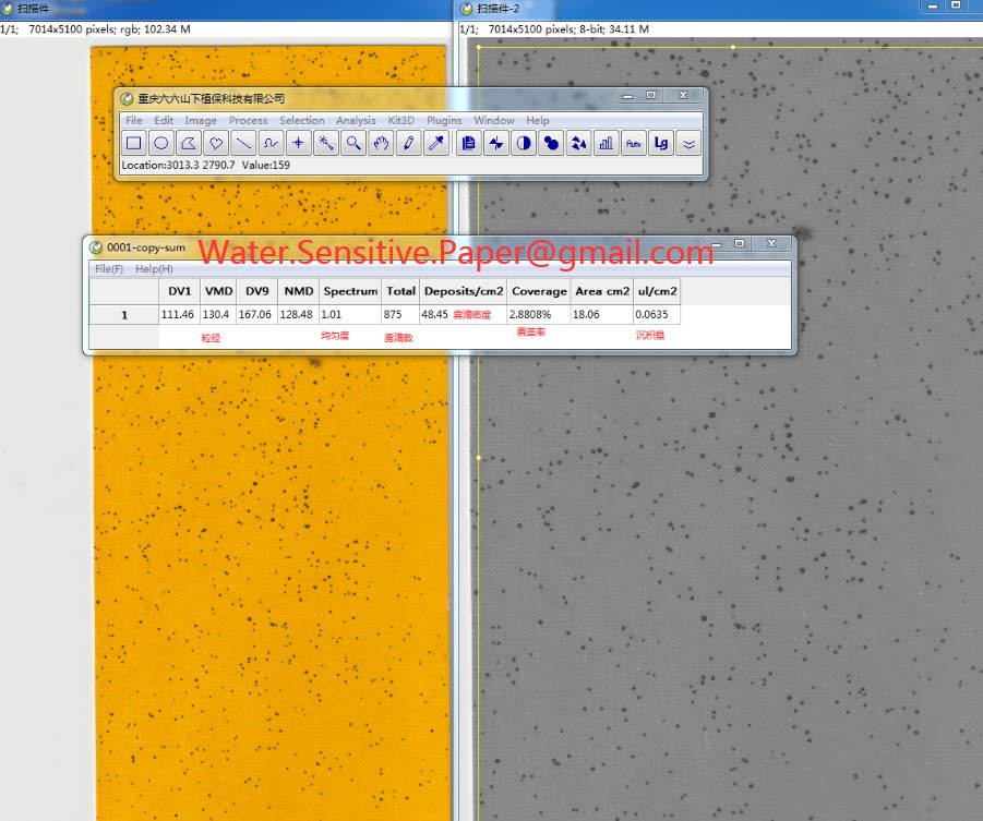 Accurate scientific research data analysis Special water sensitive paper droplet test card Distribution droplet analysis software