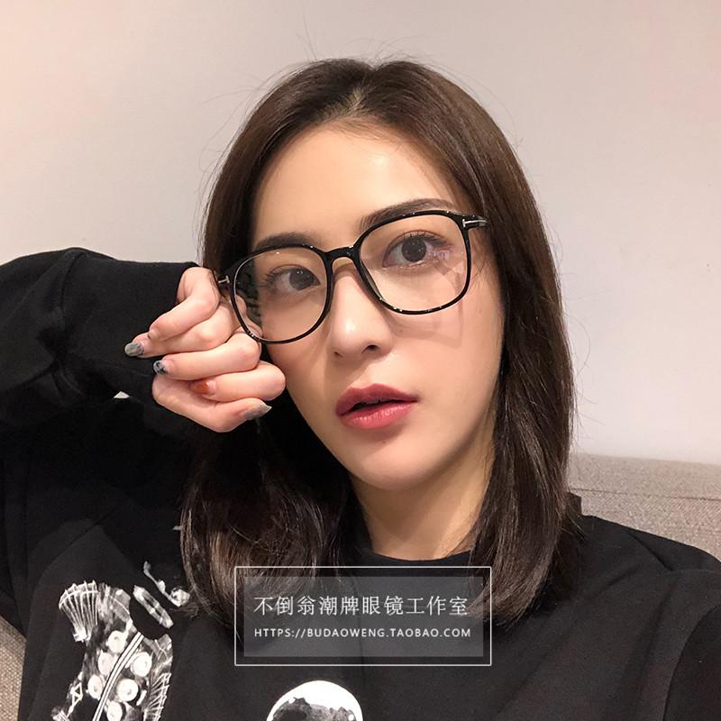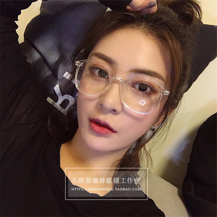 Small egg yolk with black frame glasses female Net red plain face retro flat lens can be equipped with myopia has degree Korean version of tide