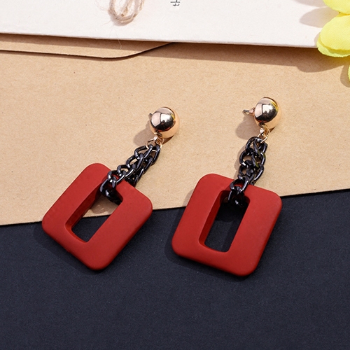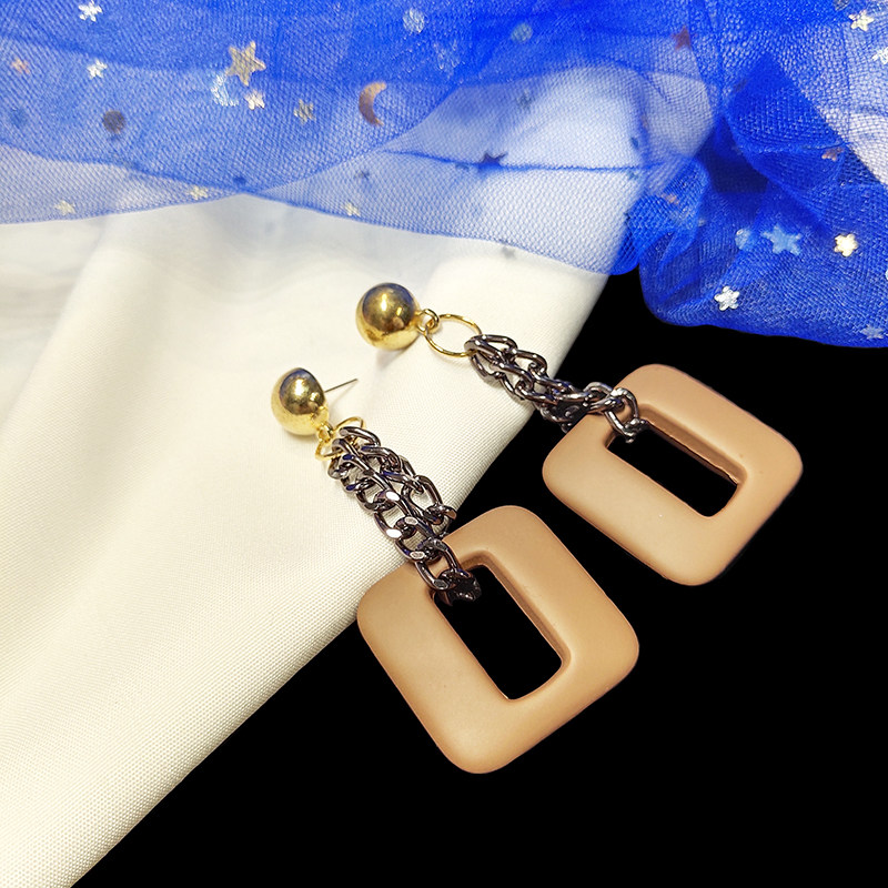 Japan-ROK version Exaggerated Wood Long Version Earrings Woman Fashion 100 Hitch Geometric Flow Suear Personality Pendant Brief Earbuke Pendant