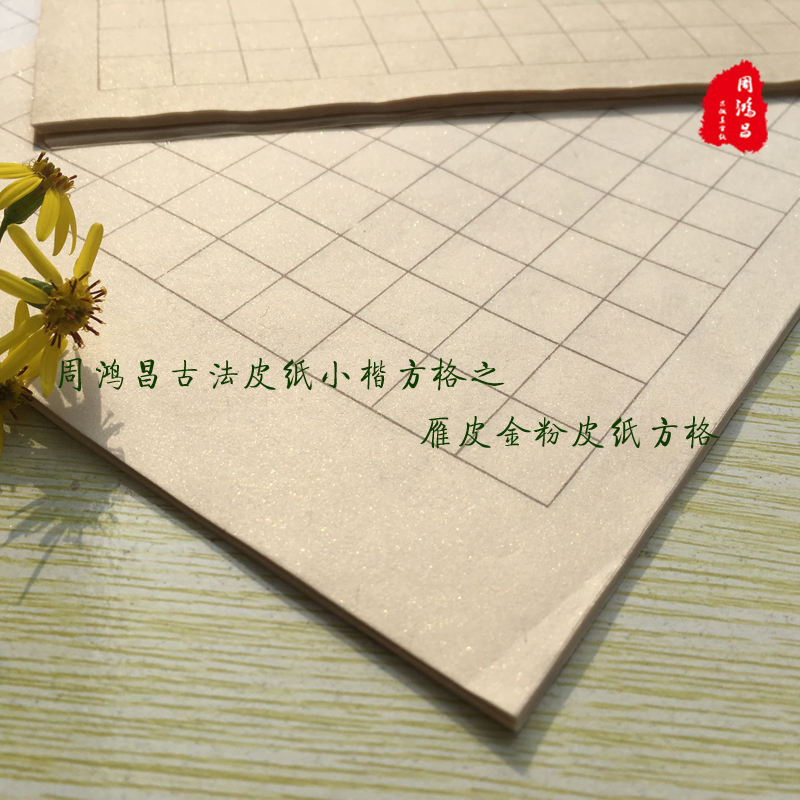 Zhou Hongchang Rice paper Ancient leather paper Small Kai square 1 5cm day class paper Brush calligraphy paper Half cooked without blinking ink