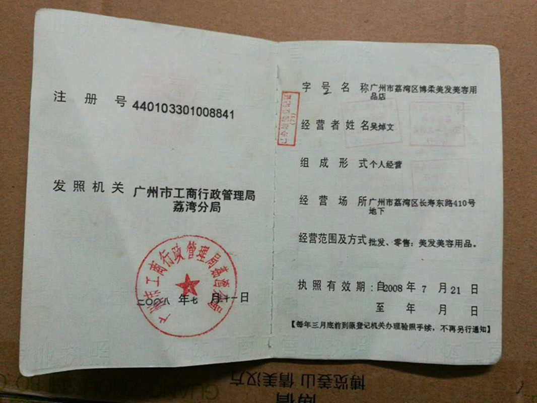 Cosmetics record number Registration certificate number:
