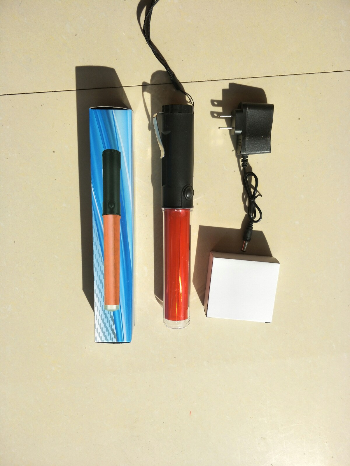 Red rechargeable LED traffic baton Fluorescent stick Fire emergency evacuation lighting Magnet hook warning stick