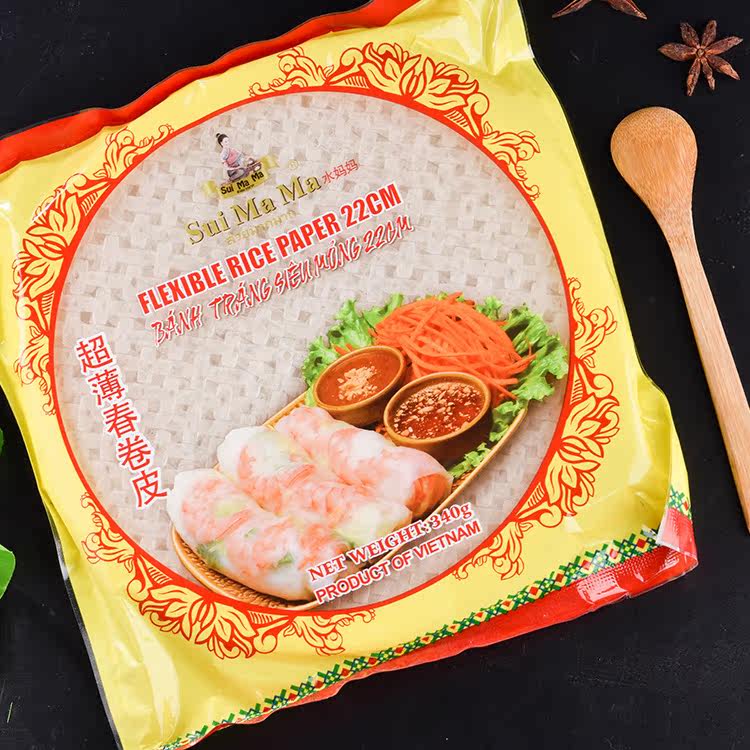 * Vietnam imported water moms ultra thin spring rolls leather 340g * 3 bags of vegetable rolls transparent rice paper fracking spring rolls