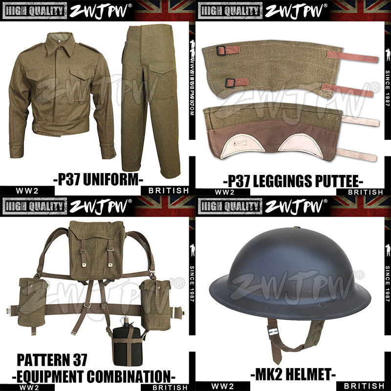 ww2 World War II British Army P37 Suite set complete with equipped clothing safety helmet