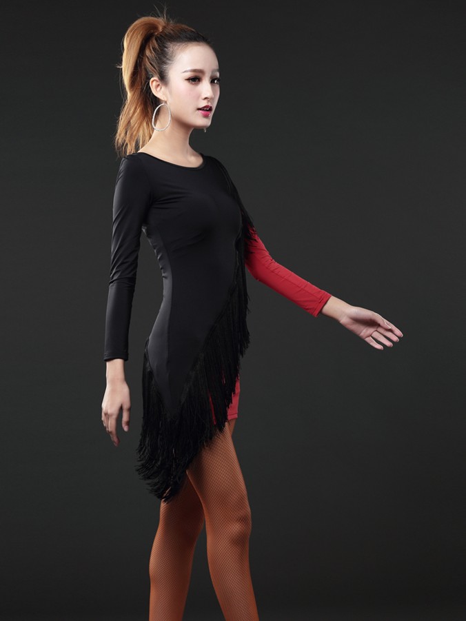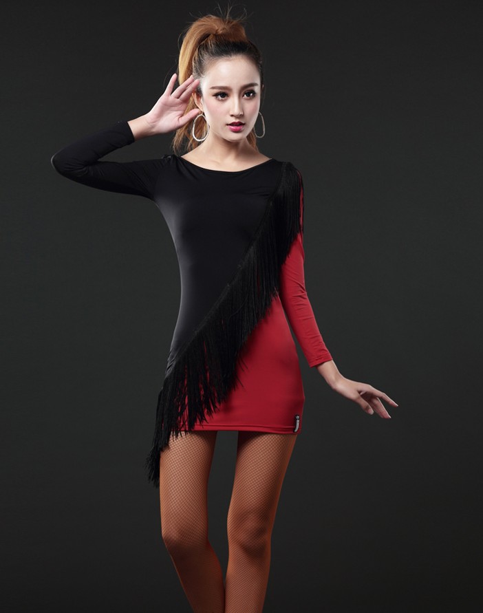 Autumn and winter new Latin dance clothing tassel dress hip skirt color matching dance practice clothing stage performance