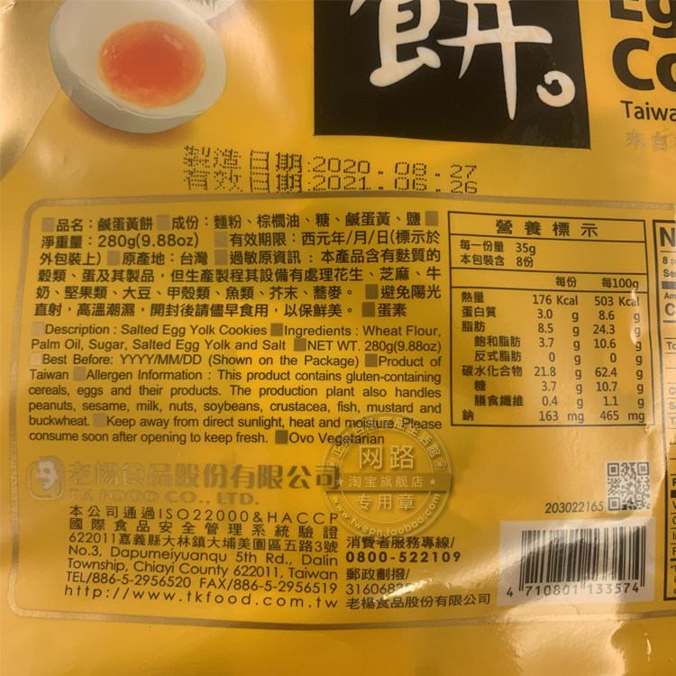 Chiayi Old Yang Salty Egg Yolks Cake 280g Bags Taiwan Traditional Crisp Cake Crisp Taipei Shunfeng Straight Hair