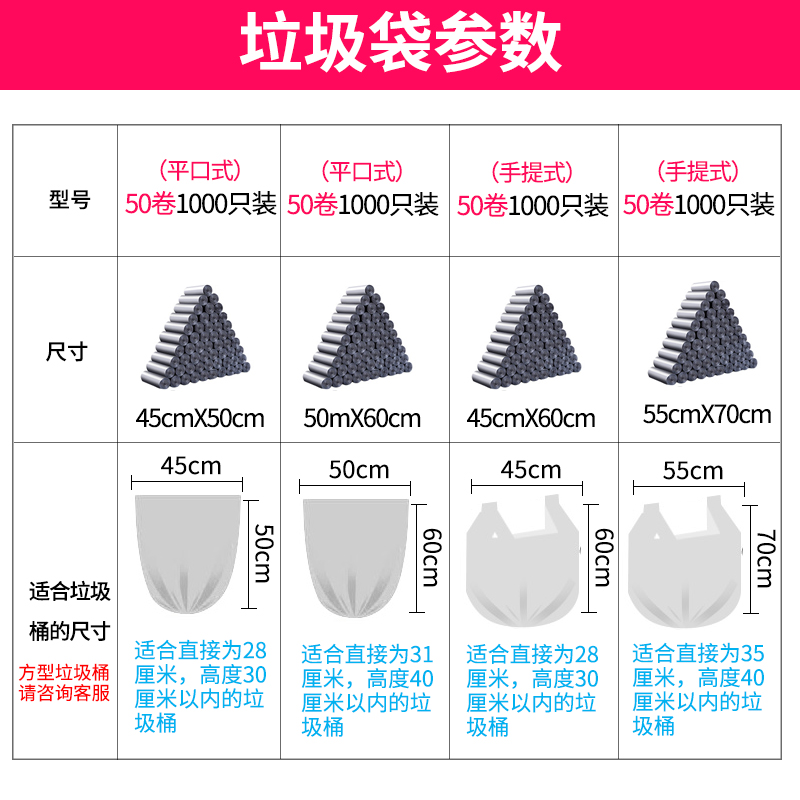 (Factory direct)A full box of 50 rolls of thickened garbage bag Household disposable medium plastic bag portable