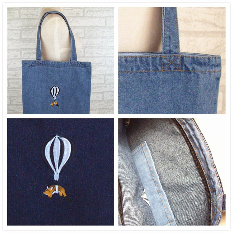 2022 new denim women's bag canvas bag large shopping bag ins shoulder bag mother bag student school bag lunch bag