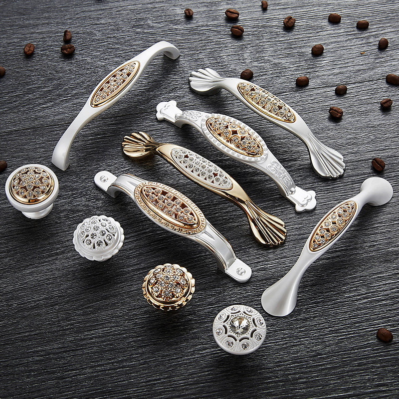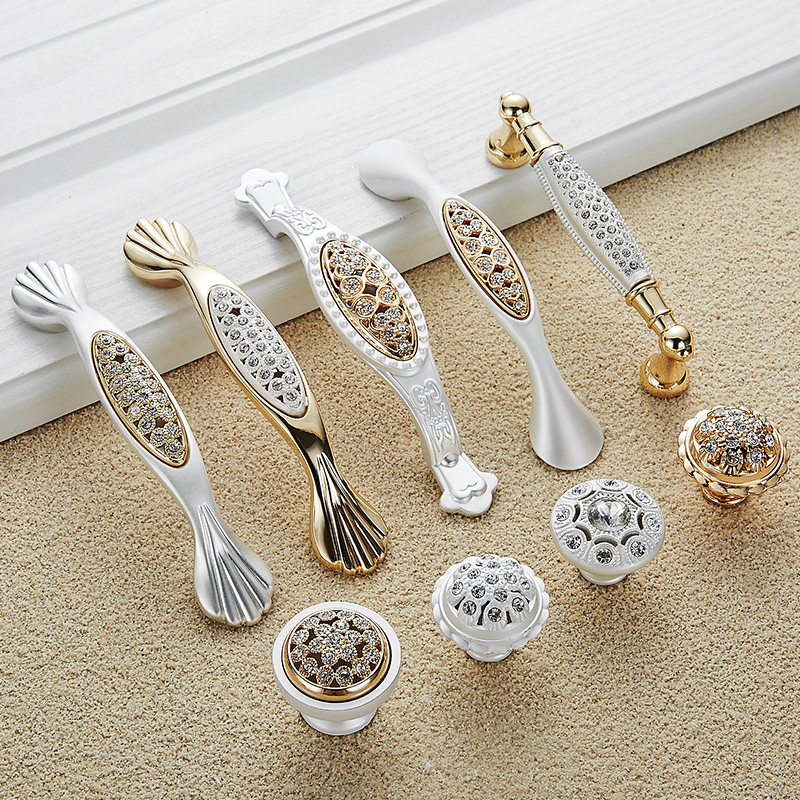 Large coat overall cabinet door handle in European and American style modern minimalist diamond inlaid drilling gold add silver white drawer hardware door handle