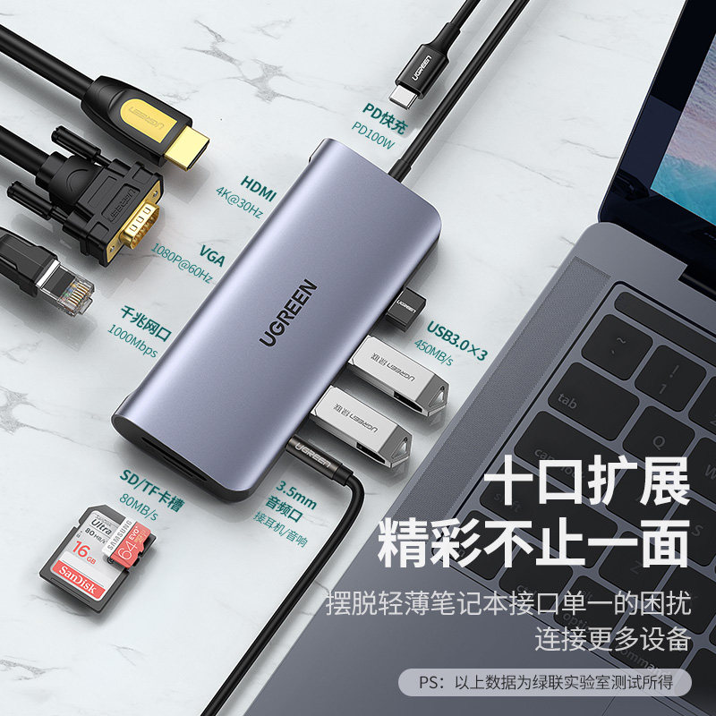 Green Union Typec Expansion Dock Apple Computer Expansion USB Splitter Hdmi Adapter Network Route Interface Applicable Huawei Notebook p40 Mobile Phone Ipad Accessories Macbook