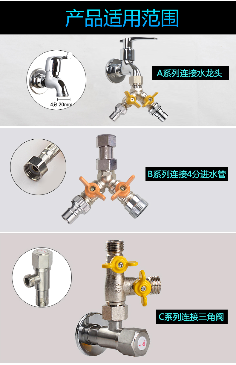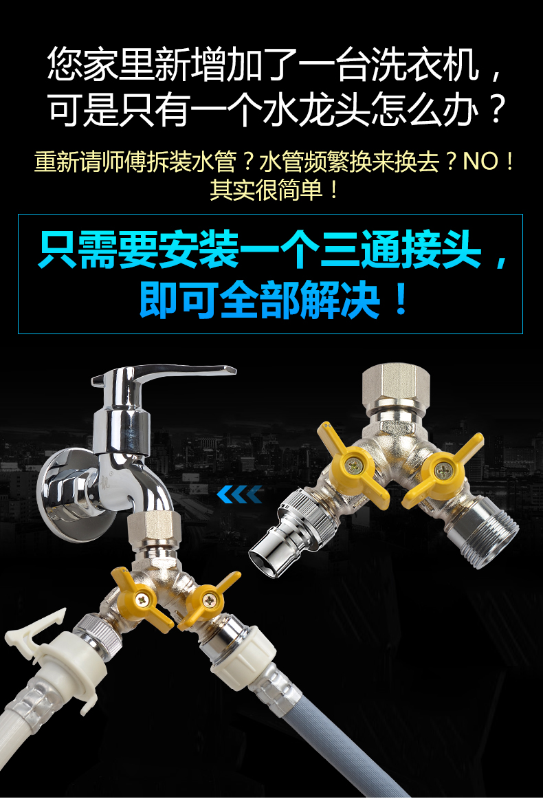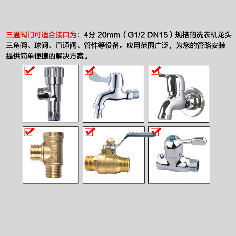 Tap 10% Two-joint three-way angle valve for one-in-two-out water splitting valve with switch washing machine diverter for 4 points