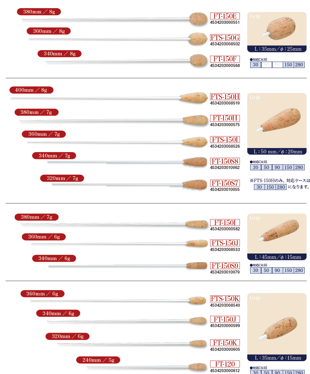 Japan PICKBOY Glass fiber music baton FT FTS-150H series 320-380mm
