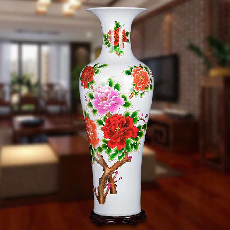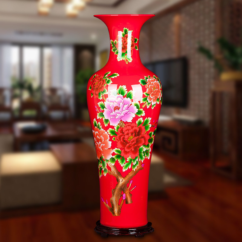 Jingdezhen ceramics Chinese red peony flowers blooming rich and noble floor large vase home decorations hotel decorations