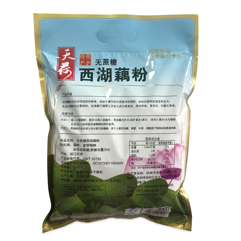 Tianho West Lake Lotus Root Powder Hangzhou Special production without cane sugar Meal Instant No Sugar Lotus Root Powder Spoon Breakfast 480g * 4 bags