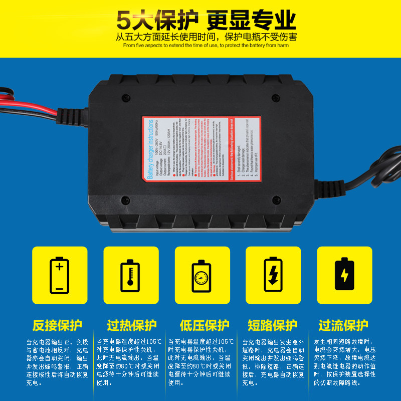 Large capacity current 12V Intelligent number of lead-acid storage batteries 20A Car battery on-board battery charger