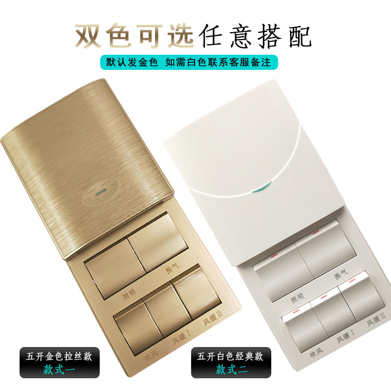 Household five-open bath master switch 5 five-in-one slide cover bathroom bathroom heater universal air heating waterproof panel