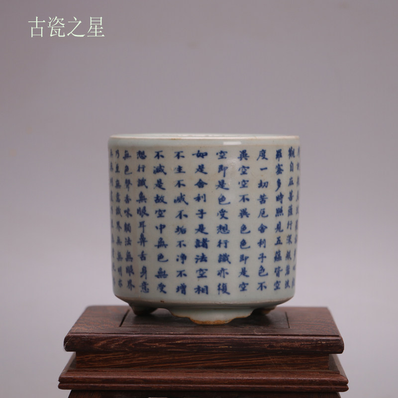 Ming Dynasty Wanli Blue and White Maha Prajna Paramita Heart Sutra Three-legged Incenter Antique Antique Antique Porcelain Collection