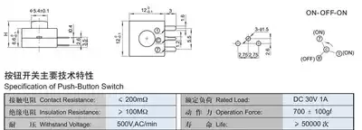 1212-213WD flashlight switch Lithium headlight push button switch three straight feet two on one off side three feet